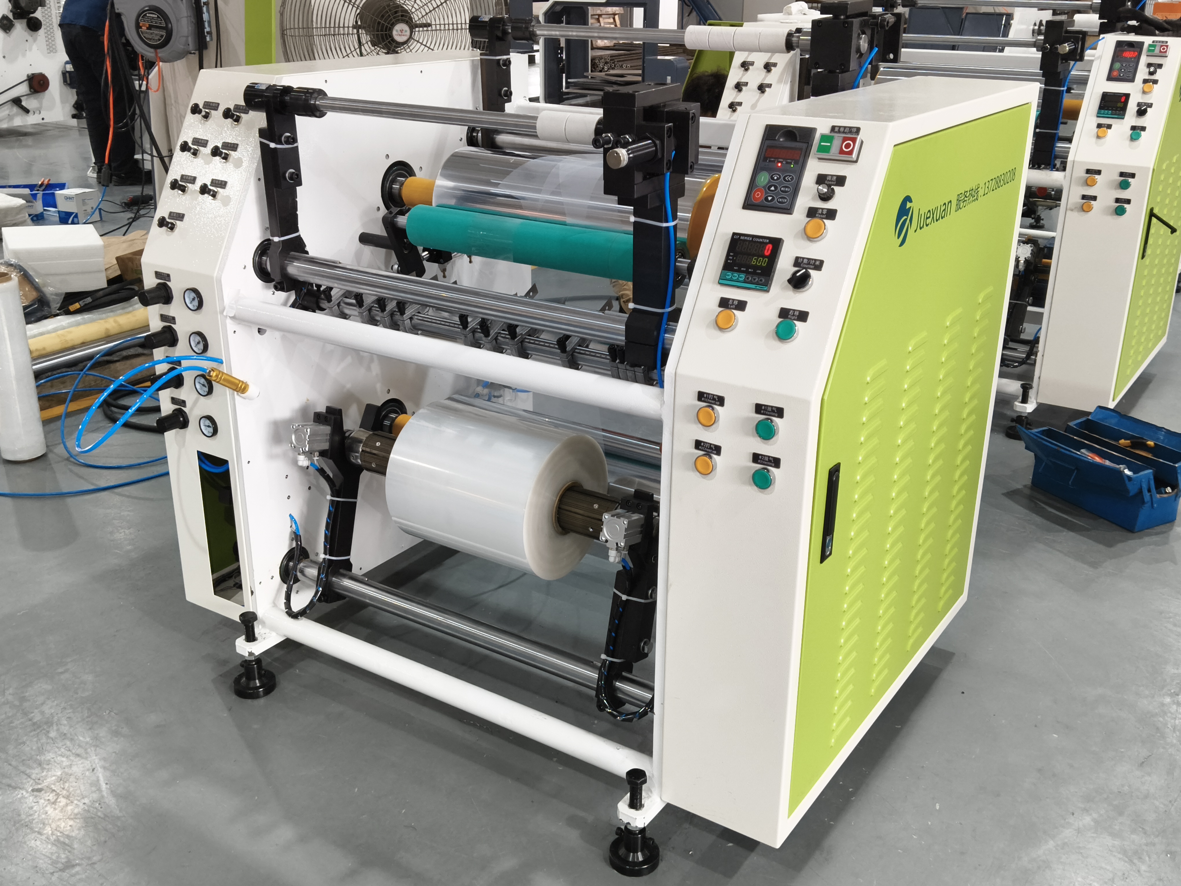 Kickstart your small-batch film processing with the JX-500-NP high speed stretch film rewinder and slitter – a compact, multi-functional workhorse designed to rewind and slit stretch film, PE handle film, PE wire packing film, and more with unparalleled precision. As a professional stretch film slitting machine and rewinding machine integrated solution, it’s tailored for small-batch stretch film producers who need to balance speed, flexibility, and operational ease. Boasting a mechanical design line speed of 1000m/min and a daily output of 800KG (12-hour shift), this film rewinding equipment delivers industrial-grade performance without occupying excessive workshop space. Its 20-500mm film width compatibility and multiple sub-roll core options make it a versatile asset for businesses looking to streamline small-batch production workflows.