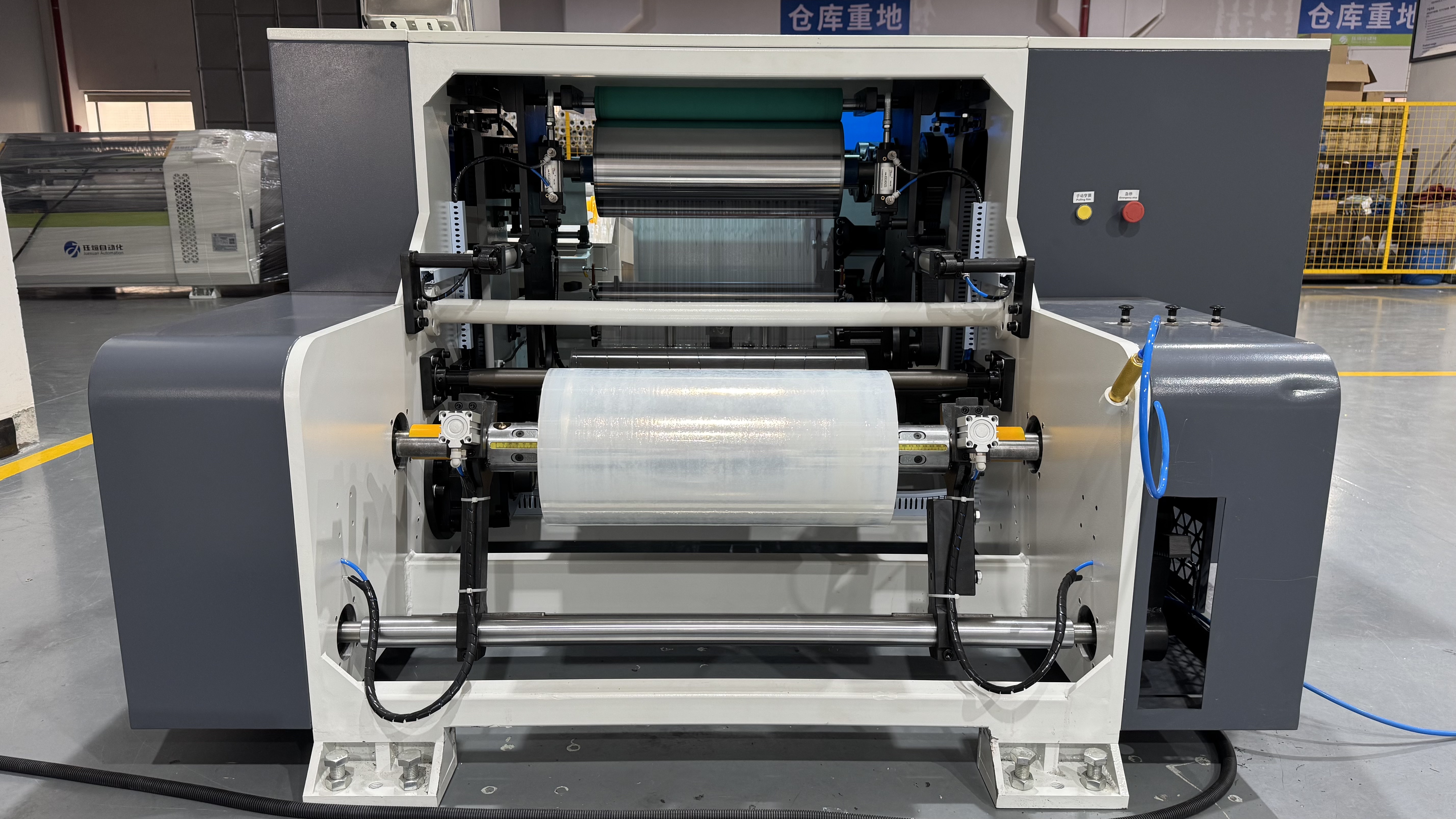 The air expansion shaft design enhances winding and rewinding stability, preventing film slippage and ensuring uniform tension. This feature is critical for maintaining film integrity and sub-roll consistency.