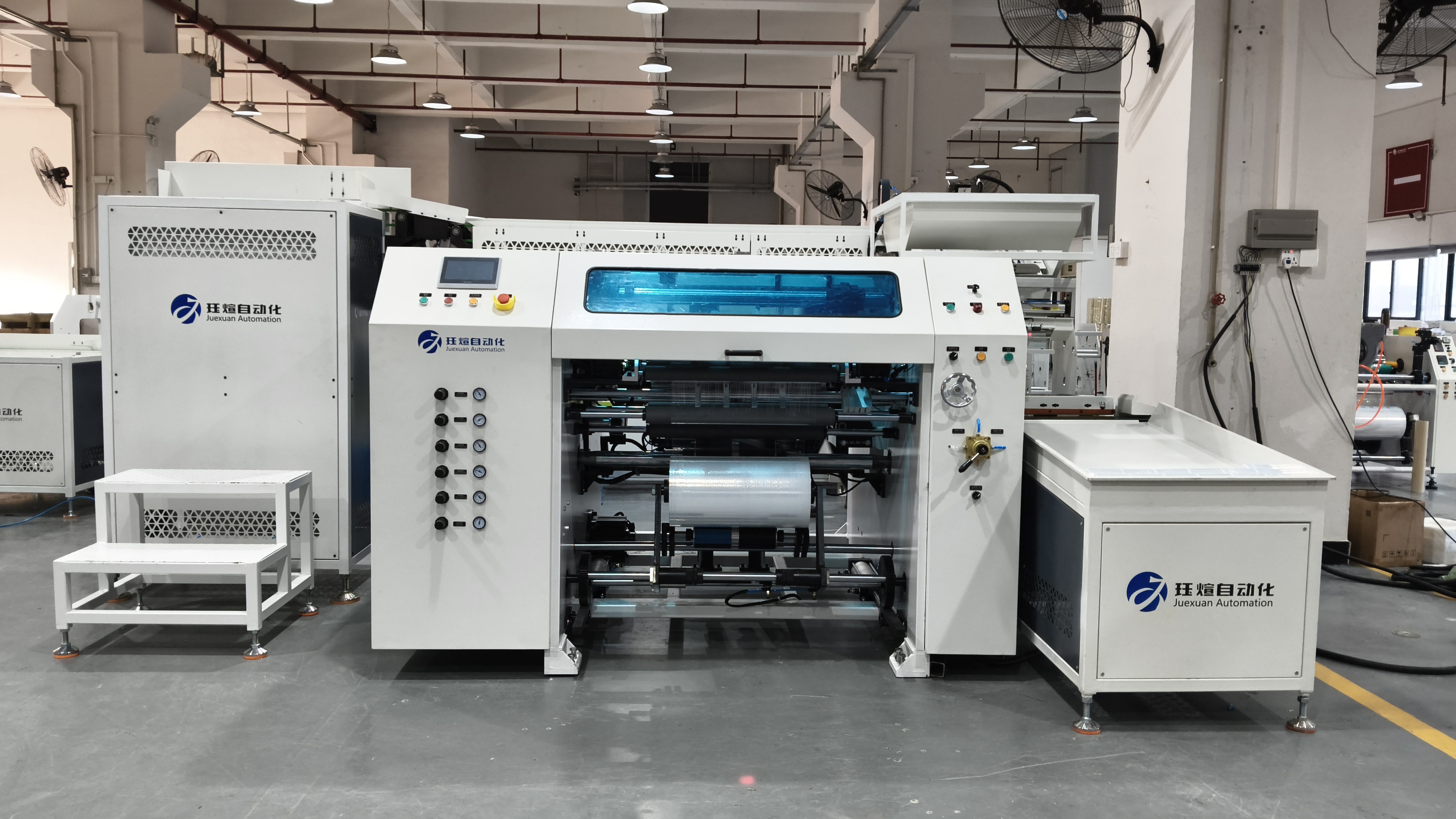 A stretch film rewinding machine is primarily designed to take a large master roll and wind it onto smaller cores to create finished hand-use or machine-use rolls. This process is essential for correcting telescoping (uneven edges) in the master roll, adjusting tension, and converting bulk material into sellable units. Advanced models, like those from Guangdong Juexuan Automation Equipment Co.,Ltd., handle this process automatically, from feeding the paper tubes to cutting the finished film.